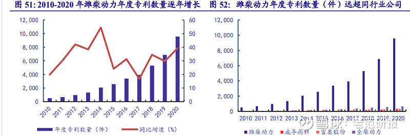 2010 至 2020 年潍柴动力年度专利数量远超威孚高科