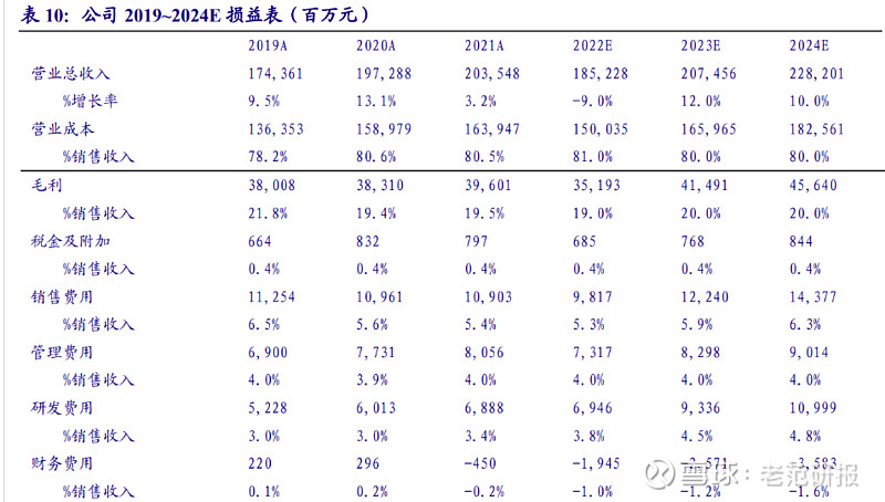我们预计公司 2022-2024 年营业收入分别为 1852.28 亿元