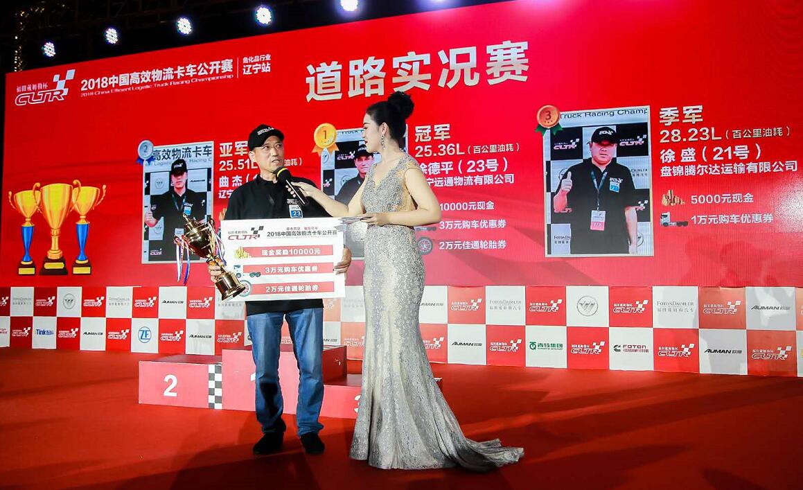8月15-16日,以“降本增效 我是冠军”为主题的福田戴姆勒杯2018中国高效物流卡车公开赛辽宁站在沈阳举办,来自辽宁远通物流有限公司的徐德平师傅以百公里油耗25.36L的成绩一马当先,夺得此次大赛道路实况赛的冠军。