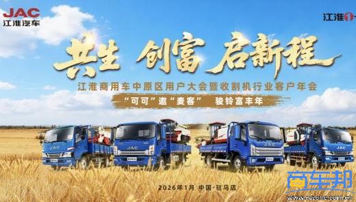 【商车邦导读】2026年1月16日,江淮商用车中原区用户大会暨收割机行业客户年会在河南驻马店圆满举行。